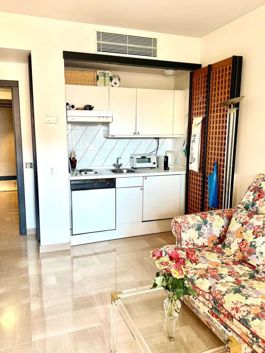 In the residential area of fontvieille, close to all amenities, (gardens, port, restaurants, crossroads shopping center, school, nursery, bus stop...) this studio in very good condition consists of: - An entrance with cupboard - A living room with equipped kitchenette - A loggia - A bathroom with toilet - A double box in the building - A cellar in the building - The apartment is air-conditioned