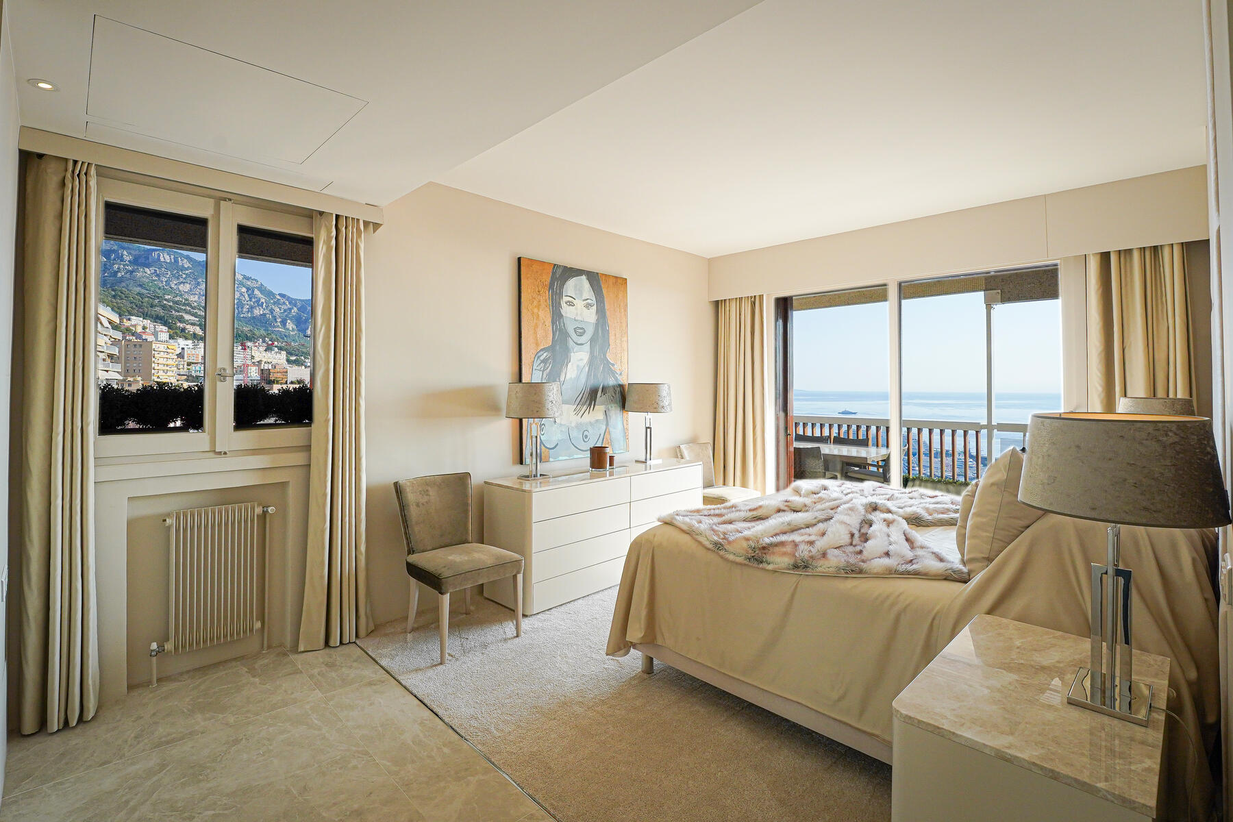 In the heart of a residential area, in a good standing building with concierge and elevator, exceptional apartment completely renovated, enjoying a spectacular view of the Italian coast, the sea and the rock. The services are top-of-the-range and very tasteful! The environment is quiet and peaceful. Ideal for a large family, the apartment has an adjoining service room for staff. Rented with 4 cellars and 4 closed boxes, this apartment is a real favorite!